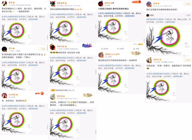 随后,那英、黄磊、张艺兴、金晨、李斯丹妮、陈楚生、GAI周延、阿朵、黄圣依数十位圈内好友都纷纷为郑钧参加《披荆斩棘》加油打气,令人感叹郑钧的好友圈实在豪华,不愧是华语摇滚圈“扛把子”。