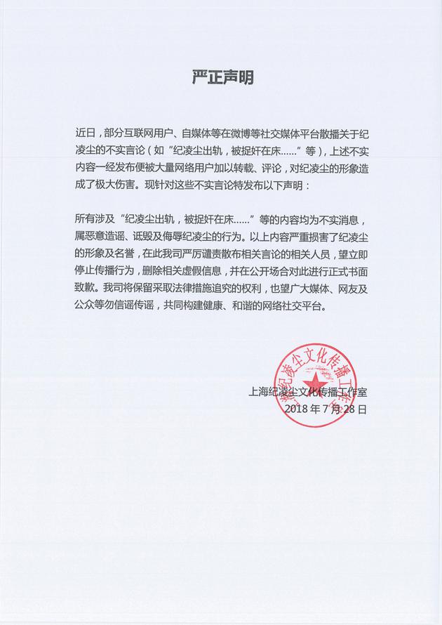 为了证明王艺是清白的,7月29日,英模针对旗下模特王艺出轨纪凌尘的传闻发表回应声明。声称:“近日各大平台散播的传闻均为不实,已对王艺造成严重损失,呼吁相关人员停止散播谣言,将保留追究造谣者法律责任的权利。王艺本人也在社交网站上回应:“人在家中坐,锅从天上来!还是个黑!锅!既然掉下来,我就收着啦,一会儿用这锅炒一大盘爆栗,送我锅的,来者有份! ”否认这一谣言。”