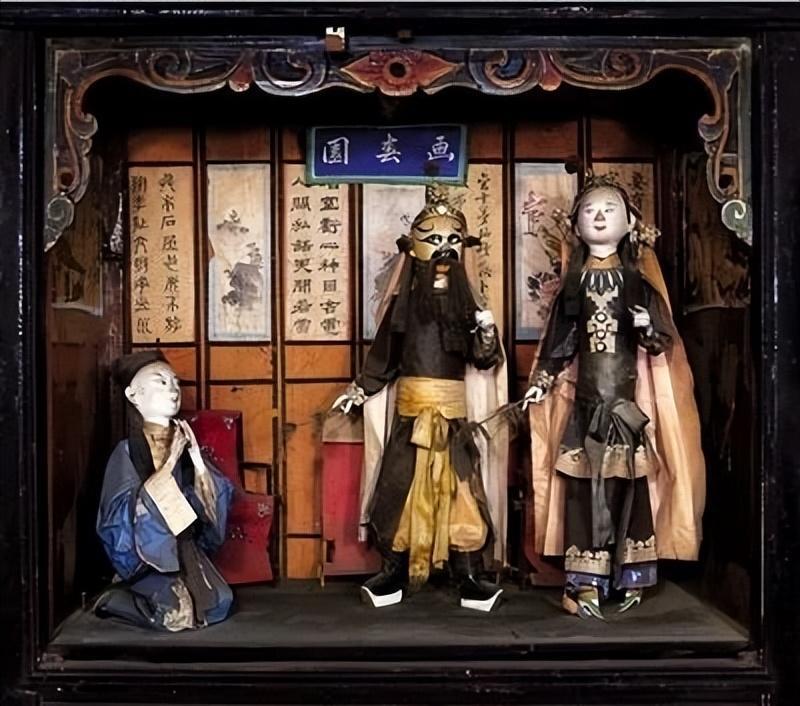 平遥“纱阁戏人”也叫“纱阁”,是以传统的戏剧为题材,先制作一个木阁,然后在木阁内摆放用稻秸泥和洒金宣纸扎制而成的戏剧人物。挂上碧纱罩,便活脱脱成一场场即将开幕的戏曲演出。
