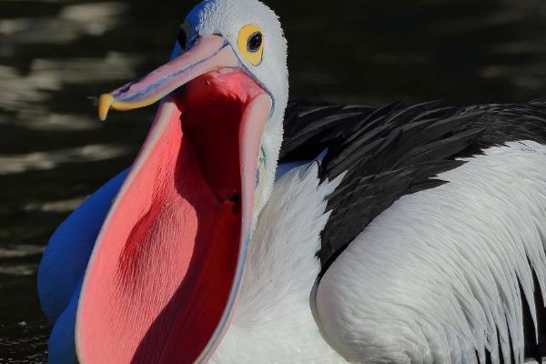 澳大利亚鹈鹕在平时都是将下嘴壳的袋子收起来的,因此看起来嘴巴并不大,只是显得非常的细长,但是每到捉鱼的时候,你就能看到它们开始长大嘴巴,试图将下嘴壳底部的喉囊展开,这时嘴巴就像是一个大勺子一样直接将鱼群捞起来,不过按照身体比例来说,澳洲鹈鹕的嘴巴还是不如世界上嘴巴最大的鸟巨嘴鸟大。