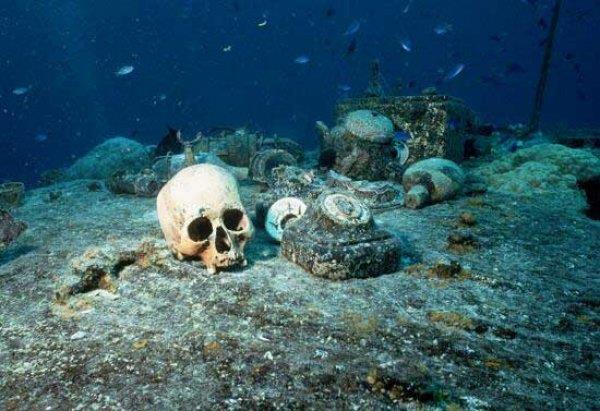根据考证,有五十多艘战舰的残骸,沉没在特鲁克泻湖底。这些沉船里,有成千上万桶化学品和没有爆炸的武器,十分危险,充满了有害物质。