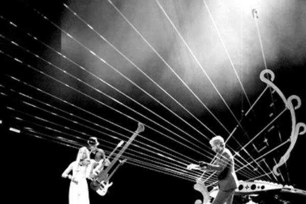 人们在大地竖琴底下观赏,仿佛置身于一个超大型的共鸣箱当中,大地竖琴演奏出来的音乐和地景融为一体,和地面还有建筑物能够共鸣出最动听的音乐。