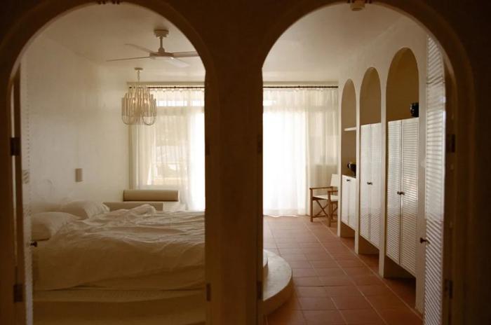 钟爱热带地区的Hana Hakim,为道格拉斯港的热带俱乐部度假村设计了一套原始风格的极简住宅。加入乌托邦美学之后,室内优美的曲线和温和的色调,营造了独特的精神部落。