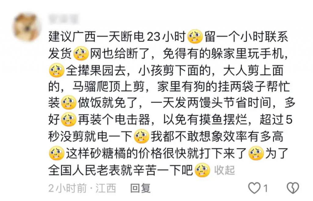 在催促广西老表剪砂糖橘的评论区里,还有另一种声音: