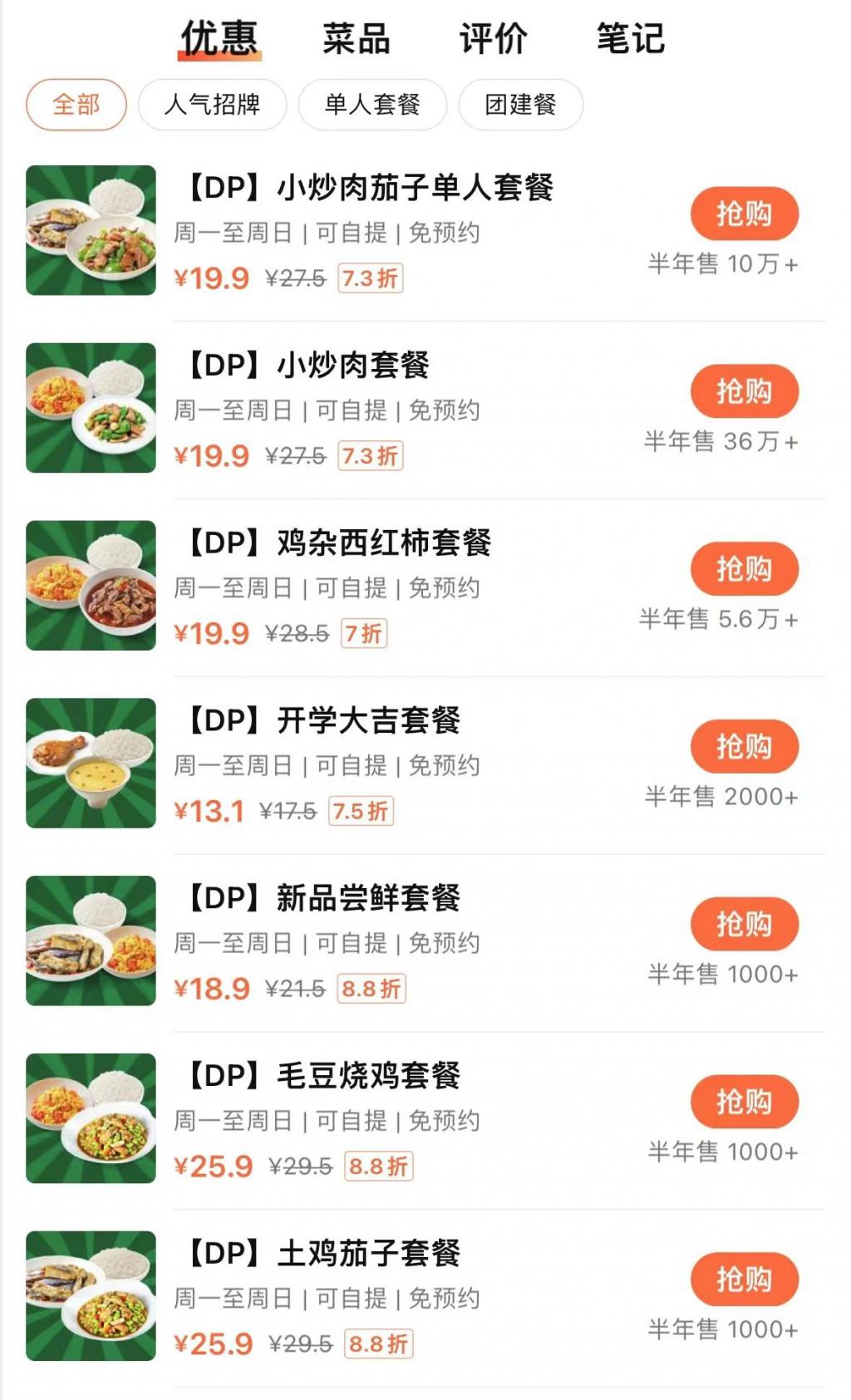 在本地生活平台,老乡鸡最受欢迎的 " 小炒肉 " 套餐半年售出超过 36 万份