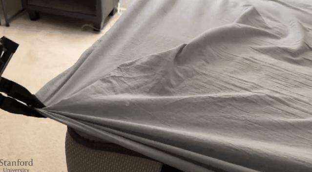 它还解决了人形机器人领域的一大技术难题——面对布料这种柔软又单薄的材质,机器人要如何完成叠被子、叠衣服等人手可以简单完成的动作。