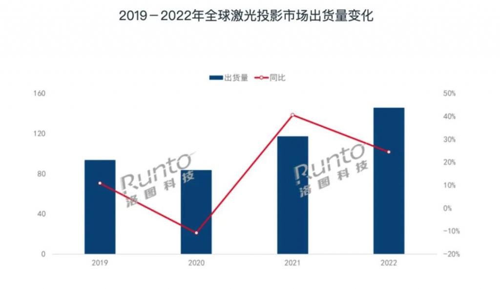根据市调机构 Omdia 的数据,受需求放缓的影响,全球电视市场 2022 年全年出货量 2.033 亿台,同比下滑 4.8%。而与此同时,作为新品类的激光电视销量却势如破竹——据洛图科技的数据,2022 年全球激光电视及激光投影设备合计出货量 145 万台,同比增长 24.4%。