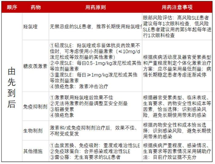 在 SLE 慢病管理中,需要对疾病活动度和器官损伤进行评估,根据不同的评估结果选择不同的药物,以最大限度地降低药物的副作用。在药物选择上,常规以激素药物、抗疟药物、免疫抑制剂等为主。