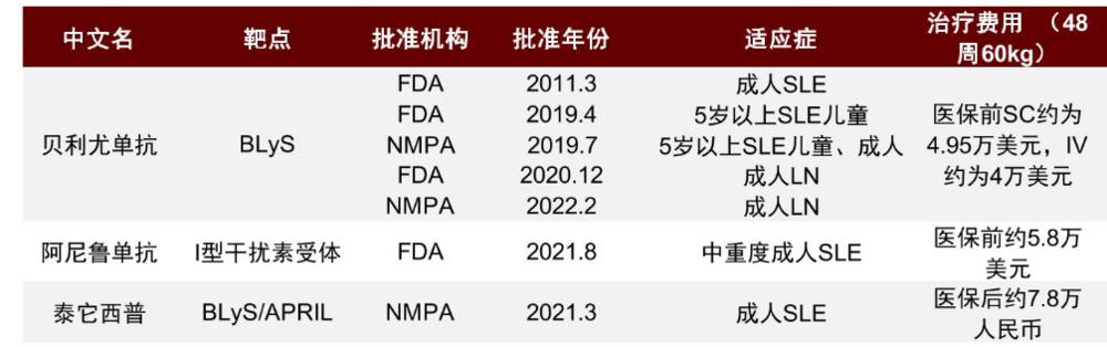 图:已经上市的 SLE 生物制剂,来源:中金公司