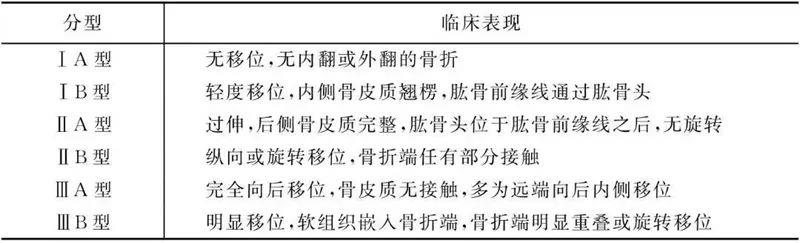 表1 肱骨髁上骨折的Gartland分型