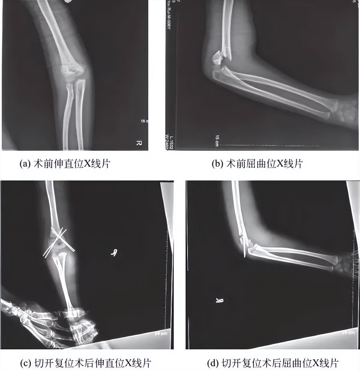 图2 肱骨髁上骨折术前术后X线片