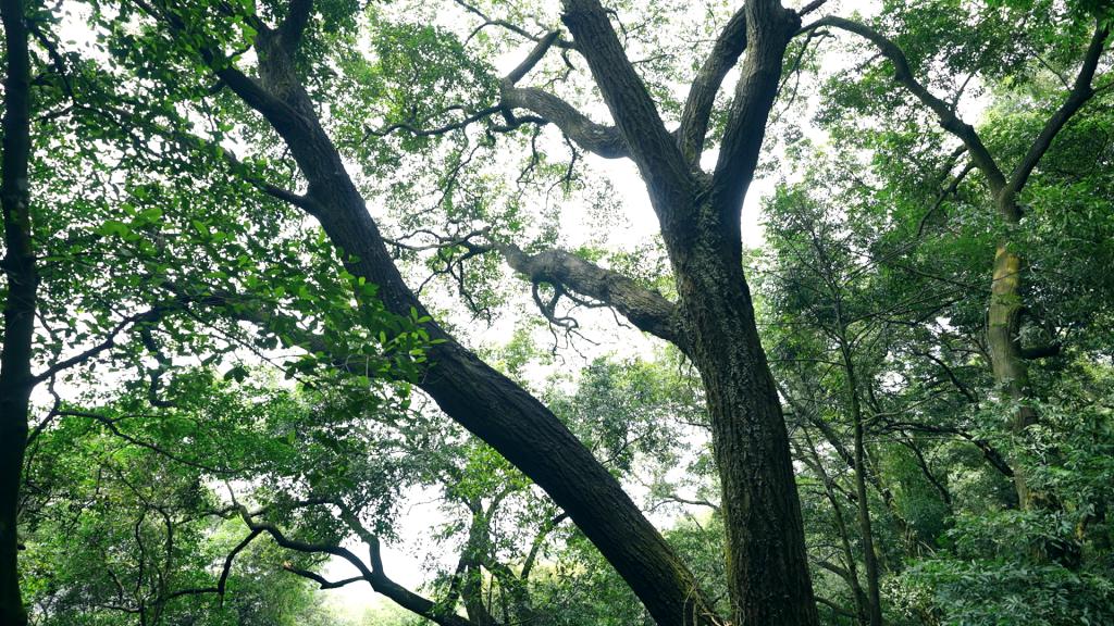 在阳江市阳春市春湾镇的高村自然村 130 多亩的古树公园里,超过 600 年历史的古树连枝成片,撑起了一片遮天蔽日的浓荫。沿着道路徒步向前,两旁的古树姿态各异,树皮粗糙苍老、树干膨大隆起,浓厚的绿意一路蜿蜒流淌。