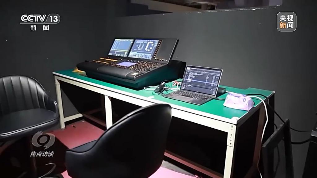 在沉浸式演出现场,记者见到附带各种电器设备的舞台声光控制台只是临时使用简易板材隔出一个半封闭空间,顶部空间与演出区和后台区连为一体。按照消防安全规定,在演出场所,这些电气设备和控制台必须放置在一个密封、独立的实体墙房间,而且要配备耐火等级为乙级的防火门。