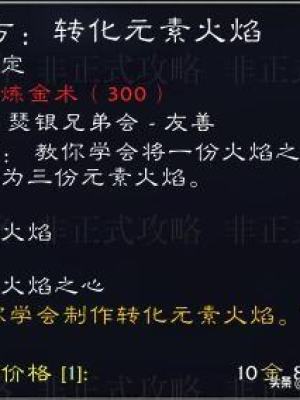 炼金:配方:转化在哪元素油火焰油去(友善),黑铁残油和黑铁碎片。