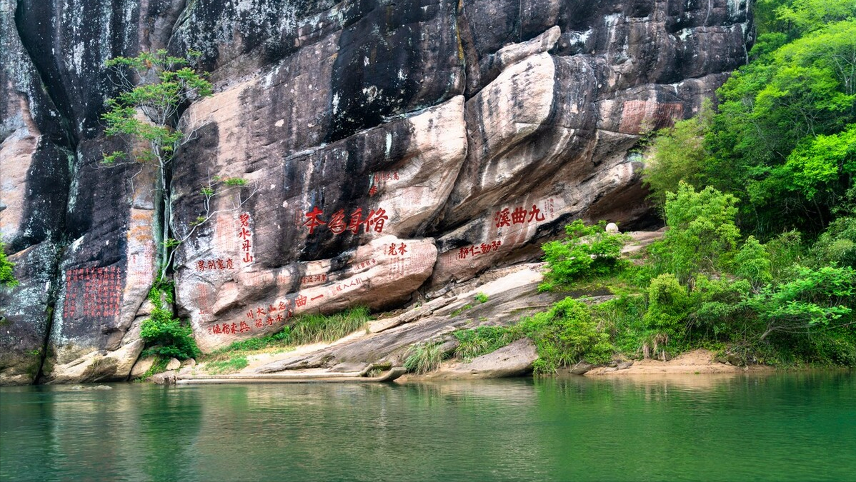 六七月的时景,夏蝉鸣的生机,古闽族以及诸多的文化遗产,都能让你置身其中感受武夷山的风带着暖意,推动着你一步步探索这座山的魅力。高低起伏的青山,夹杂着片片翠绿的茶;九曲溪下的流水,透露着鱼翔浅底的澈;坐竹筏顺流而下,望着顶峰登高驻足的旅人;而后便起身伫立于船头,一睹江山如此多娇,引无数英雄竞折腰……