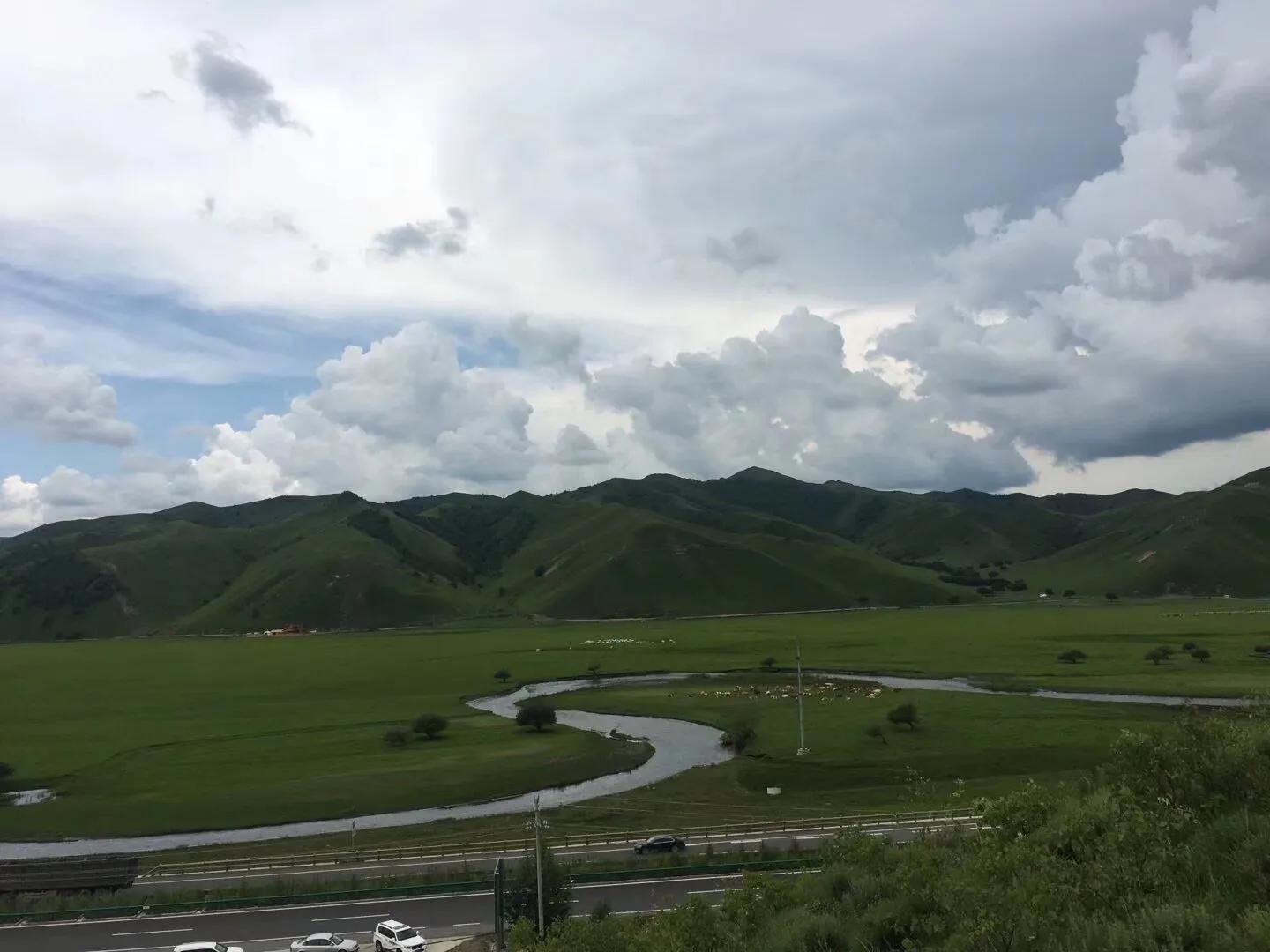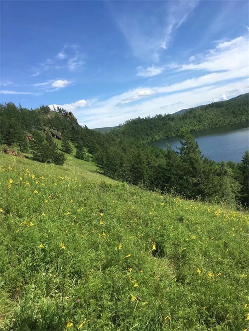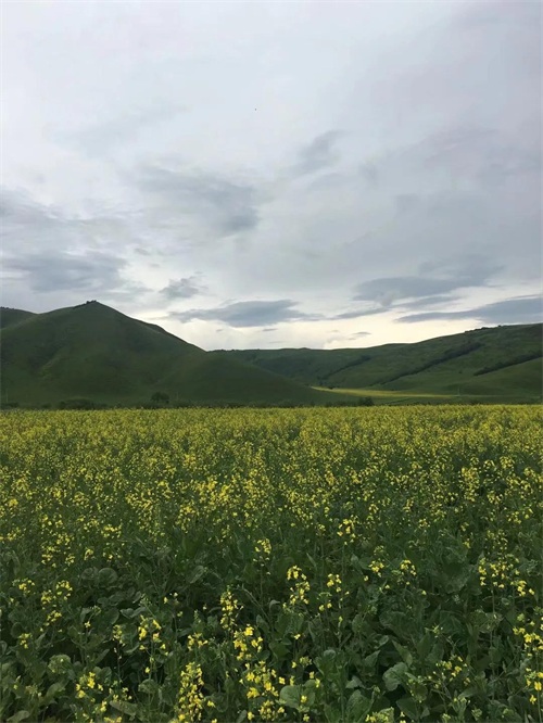 然后驾车前往海拉尔市,沿途美景尽收眼底,有草甸、蜿蜒曲折的河流在绿油油的草地中,像被绿毯覆盖的山坡上,有一群群雪白的绵羊在吃草,现在刚好一片一片黄灿灿油菜花盛开,景色宜人,沁人心脾。
