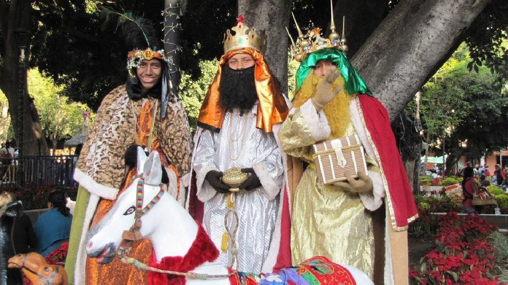 可能会看到男士装扮成三位国王在墨西哥城镇广场,公园和购物中心与孩子们合影。1月5日晚上,智者们的身影被放置在纳西米托或耶稣诞生场景中。