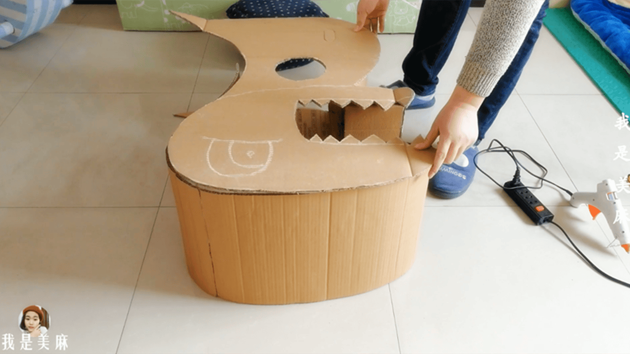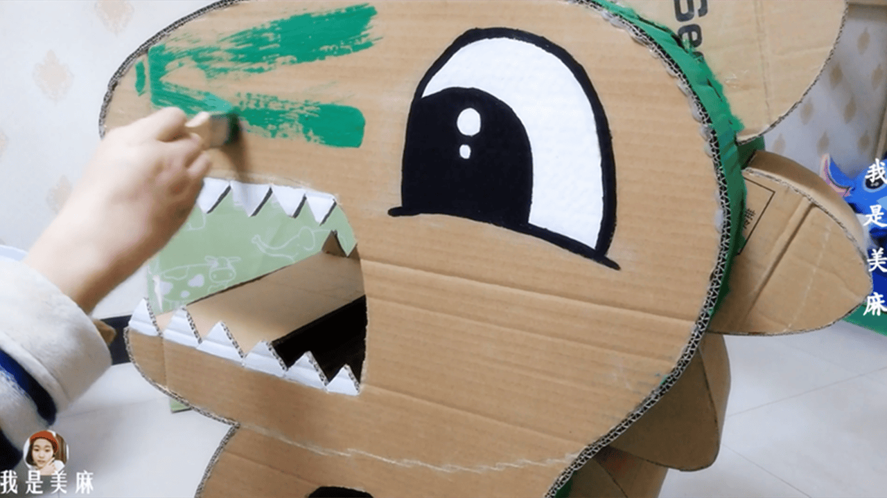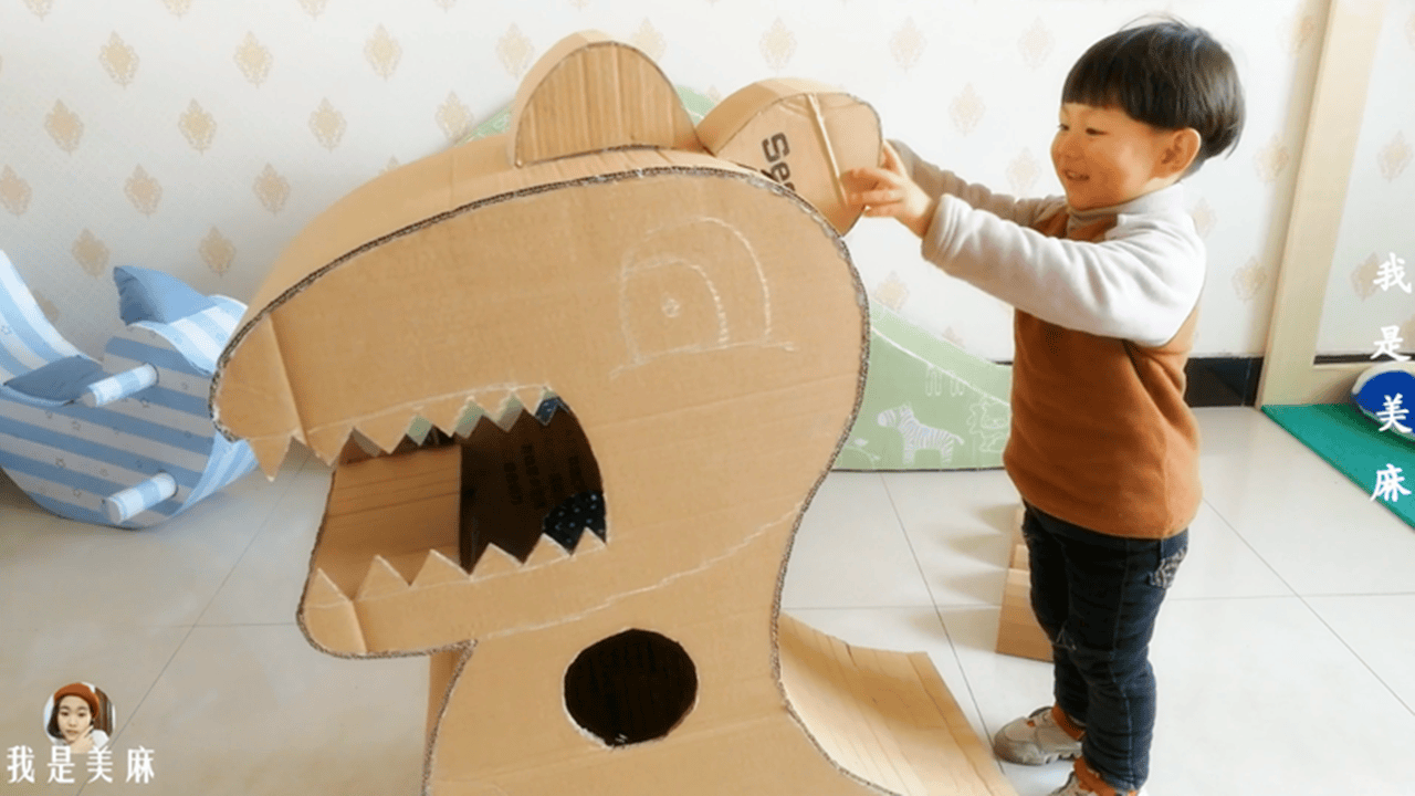 怎么用纸箱做恐龙可以装孩子 纸箱做恐龙视频教程