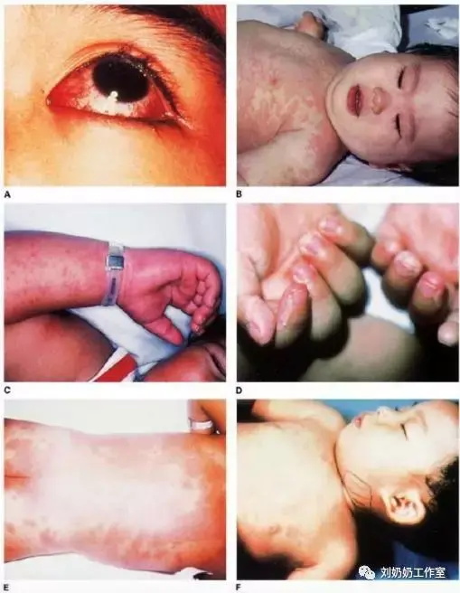 5、临床表现以高热、全身皮疹、淋巴结肿大为主。
