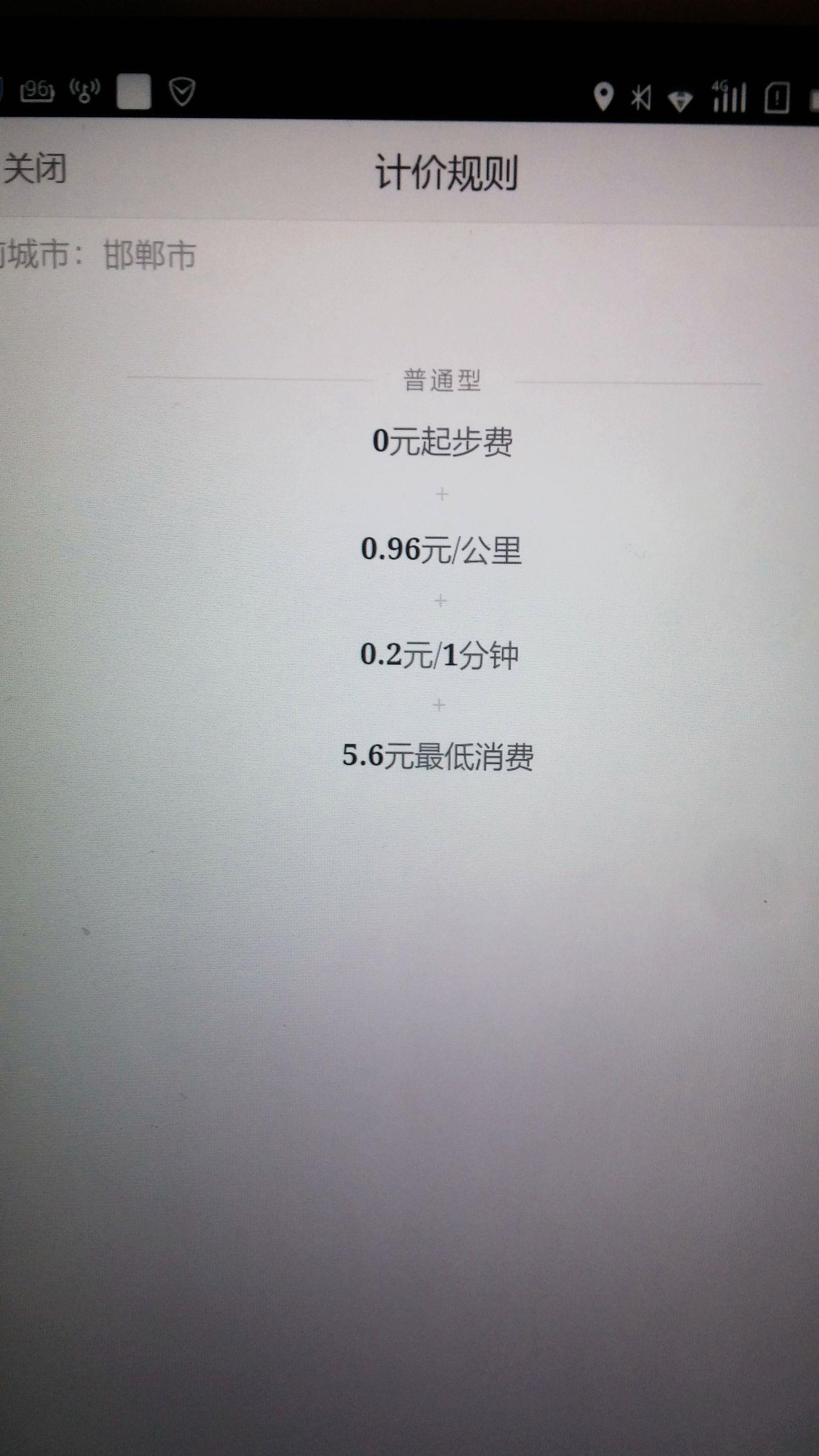 说来也巧,近日去浙江嘉兴出差,叫了辆滴滴快车,无意中看到,嘉兴和邯郸的计费标准大为不同。邯郸是三线城市,嘉兴新晋二线城市,嘉兴滴滴快车1.8元/公里,0.3元/分钟,8元最低消费。比邯郸0.96元/公里高了近一倍。我问司机,生意应该不错吧!司机说,不行,以前有补贴的时候,每周能挣两千七八,现在没有补贴不行了,昨天毛收入200多块钱,油钱都要100快,就挣100来块钱,怎么能行?