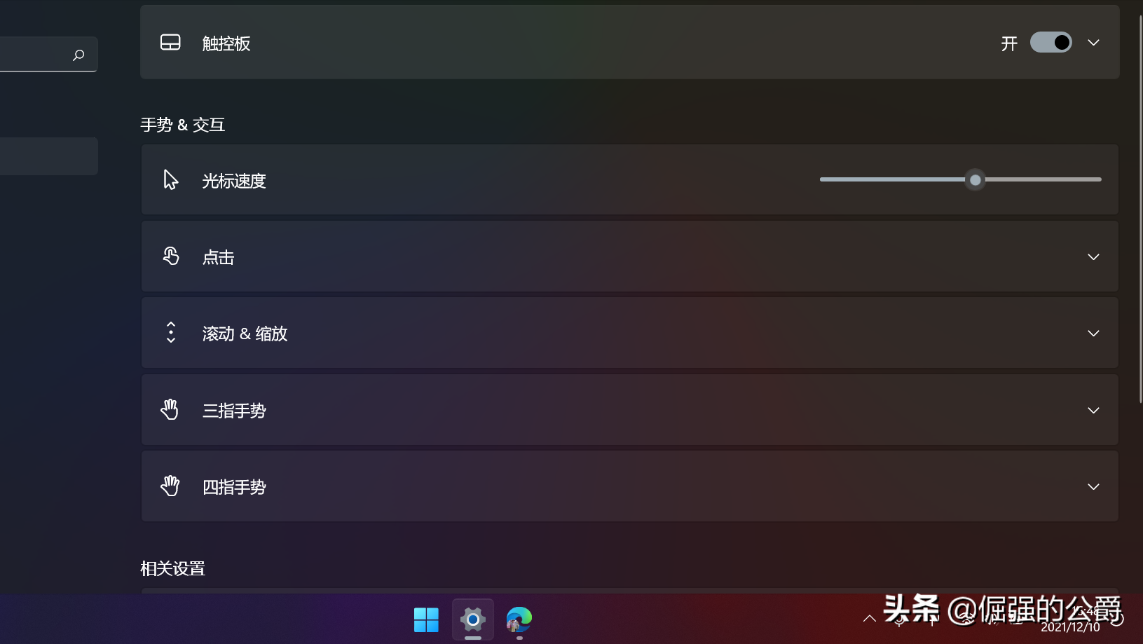 2.如果点击了F9键后,触摸板还是无法用,大概率是在系统设置里面将触摸板选项关闭了。如果在设置里面将笔记本的触摸板选项关闭,那么按F9快捷键是不起作用的,按了之后只能看到关闭或者打开触摸板的图标在闪动,实际上触摸板还是没有反应的。这就需要是设置里面打开触摸板的开关,window11里面其实很简单就能找到触摸板选项。下面是步骤: