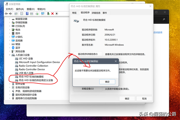 3.一般情况下,硬件坏的可能性比较小,除非进水或者人为损坏。现在笔记本触摸板一般都是免驱动的,更新驱动的可能性比较小。不信打开电脑的设备管理器,找到触控板看看就知道了,如下图: