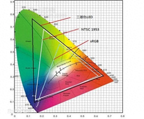 这两者所包含的色彩范围是不太一样的,NTSC所表现的色彩要更丰富一些,而sRGB所表现的色彩几乎被NTSC所包含。