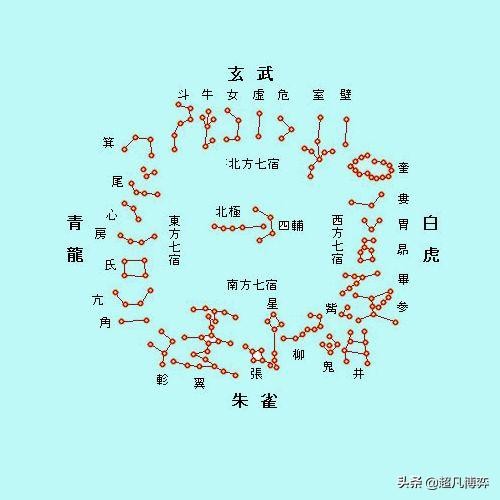 它分为四组,又称为“四象”“四兽”“四维”“四方神”,每组各有七个星宿。