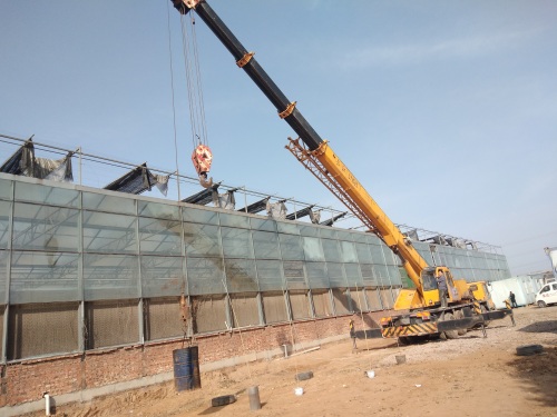 在起重臂里面的下面有一个转动卷筒,上面绕钢丝绳,钢丝绳通过在下一节臂顶端上的滑轮,将上一节起重臂拉出去,依此类推。