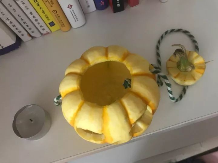 昨晚发朋友圈,晒了一下六六用爷爷种的南瓜做出的南瓜灯。▼▼