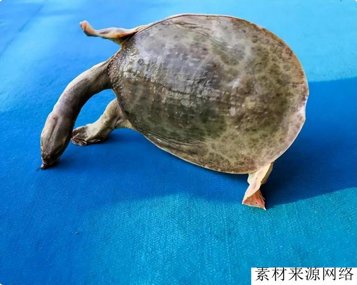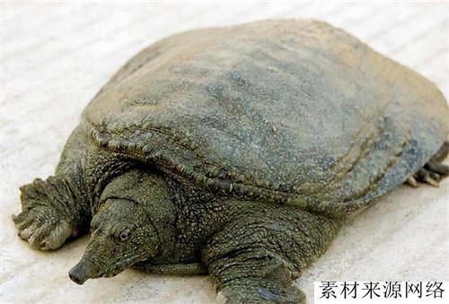 山瑞鳖的头部是它的一大特色,它的头很大,占了整个身体的1/4,它的吻很长,形成了一个吻突,这个吻突可以帮助它在水中探测食物和敌人的气味。它的眼睛很小,两眼有一个棕红色的圆环,这个圆环可以增强它的视觉,让它能够在混浊的水中看清楚。它的颈部很长,颈基部两侧各有一团大瘰疣,这些瘰疣是它的一种防御器官,当它受到攻击时,可以用瘰疣喷出一种刺激性的液体,让敌人退避。