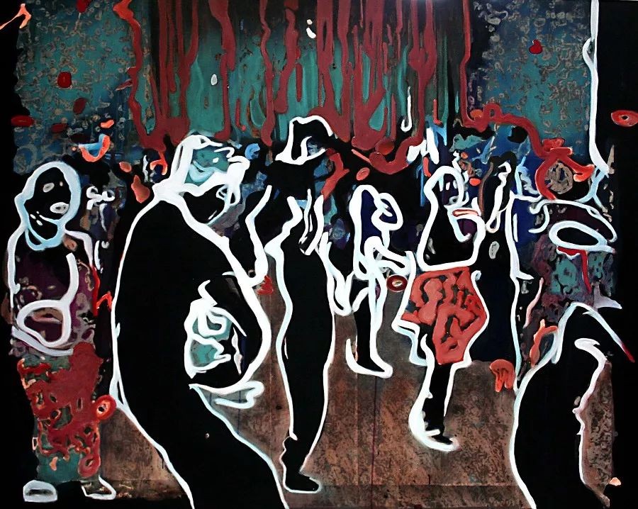 一些艺术家们在作品上也体现出了对音乐和Rave文化的热爱和所受到的影响。以Rave为主体的画作通常使用鲜明的颜色、流畅的线条和大胆粗犷的笔触,似乎是在呼应各类Rave音乐中多变的节奏、激昂的旋律以及复杂的混音效果。