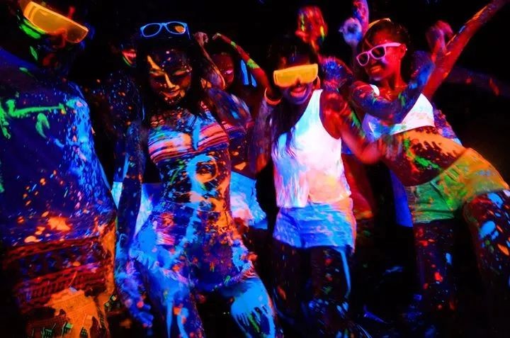 一些活动主办方还会以霓虹为主体和噱头举办Rave派对,在活动中向人群洒荧光颜料或泡沫。如此一来,每个人身上都有了色彩,欢乐的情绪也彼此传染。更有甚者,用荧光涂料画出了漂亮的派对装扮独领风骚。这样的Rave派对也可以说是大型集体行为艺术了。