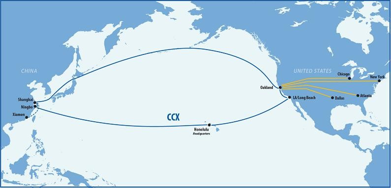 为了进一步满足市场对中美快航服务的迫切舱位需求。2021年6月7日,美森宣布加开了旺季非周班加班航线CCX。7月27日美森Mokihana 420E这班船开启了Matson CCX服务,该航线每五周会有三周从中国宁波或上海出发,中国-奥克兰港航线的海上运输时间为12至14天。