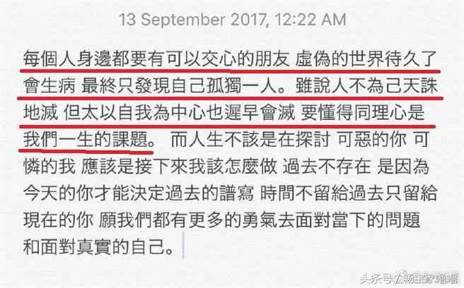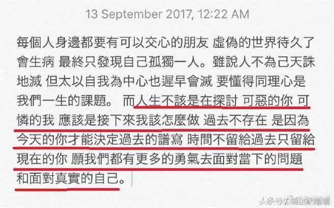 几天后,张韶涵转发宣传文时也意有所指写了一段话:“每个人身边都要有可以交心的朋友,虚伪的世界待久了会生病,最终只发现自己孤独一人。虽说人不为己天诛地灭,但太以自我为中心也迟早会灭,要懂得同理心是我们一生的课题。”