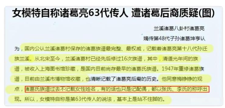 嫩模自称诸葛后人