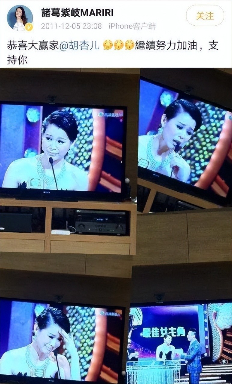陈法拉落败后,她还发微博祝贺胡杏儿取胜,胳膊肘就没拐回来过。