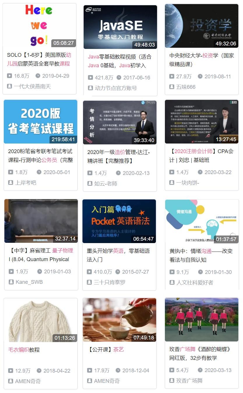 如果你想学习知识,那B站真的是一个绝佳去处,从幼儿园课程到大学课程,从职业培训到兴趣爱好拓展,从茶艺到广场舞,只要是你能想得到的,这里基本都有。