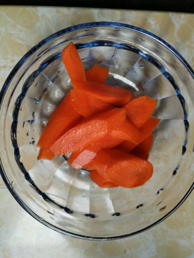 准备一根胡萝卜,胡萝卜洗净去皮摊又切成片,加一个鸡蛋减脂榨成汁无面,胡萝卜鸡蛋饼减脂。