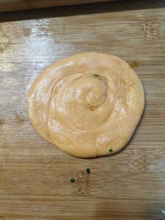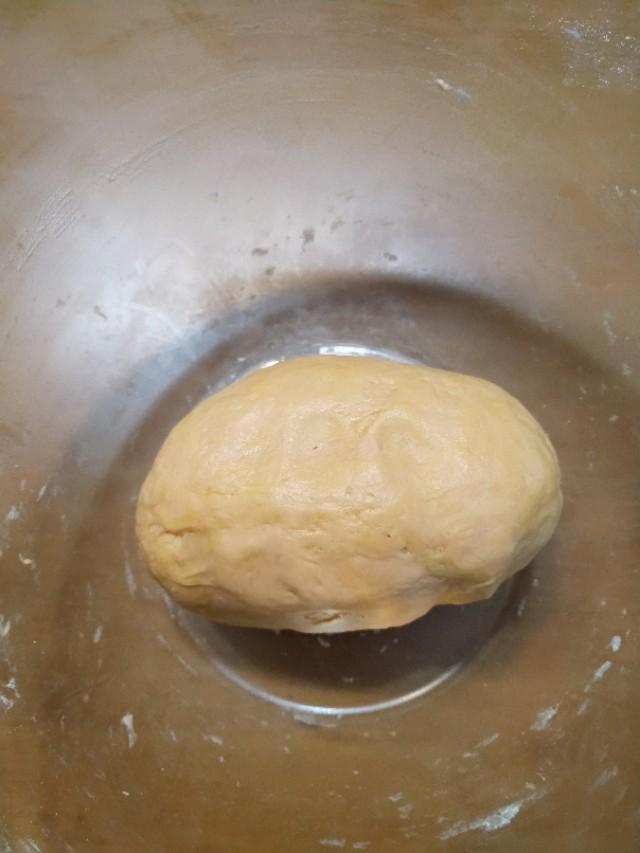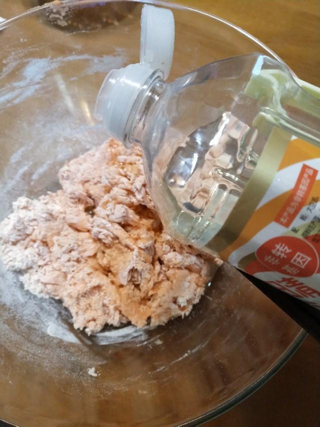 准备300g普通面粉,加入做法一点盐,用榨好的铛胡萝卜汁和面,如果面团太干就加点水,太稀就加点面,搅成絮状后加入20g左右的玉米油,最终和成一个偏软的面团。