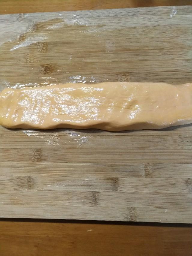 案板上抹上一层油,胡萝卜鸡蛋饼早餐的做法,把醒好的面团放案板上不用蛋饼揉,胡萝卜鸡蛋饼的做法电饼铛,直接整成电饼长条。