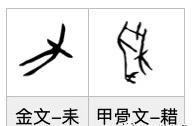 在湖北隨州葉家山西周早期的曾國墓地,出土了一件《犁子鼎》,「犁」字就是在「力」下面加了犁頭。最早的石犁出現於5000~6000年前新石器時代的崧澤文化。因此甲骨文「力」字的字形就是「犁」字的簡省,而「力」的本義就是犁。力和犁的讀音也是一樣的。因為耕地要用力氣,所以才引申爲力氣。