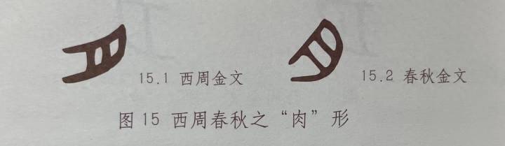 可见从商代以降,“肉”字形基本保持不变,“月”经过了较大变化,慢慢向“肉”靠拢。