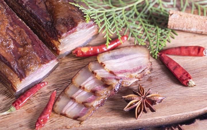 临近春节,腊肉是必不可少的年味。新鲜的肉,腌制加风干后,呈现金黄色。切片下锅,放入蒜苗或青椒,各种味道交织,是很多人心里的乡愁。