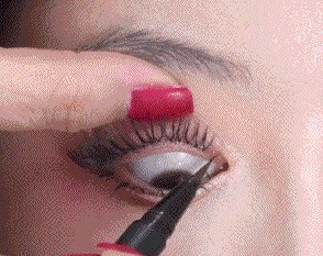 这款眼线任何眼型都可以轻松驾驭,眼尾平行往后拖即可是什么,高度不低于眼头。注意不要画到上下眼皮交界的最凹处,频繁地眨眼让这个位置最易晕妆。