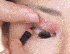 用手指轻轻提起天生上眼皮,或者用棉棒轻轻掀起内眼睑,这样会更好画。