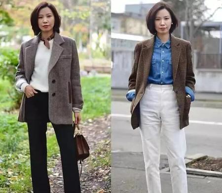当然,如果既想要将咖色系穿在身上,又不想咖色占比太大。可以考虑咖色系的格子加其他颜色,咖色系的细格暗纹,既保留了灰色的高级感,又揉进了咖色,增加了时尚元素。