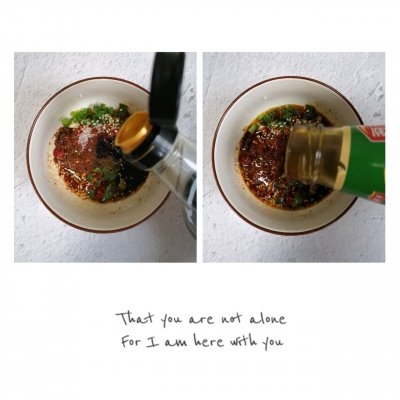 小葱 2根小米椒 2个大蒜 5瓣生抽 4勺老抽 2勺白醋 4勺耗油 1勺白芝麻 10g白糖 5g