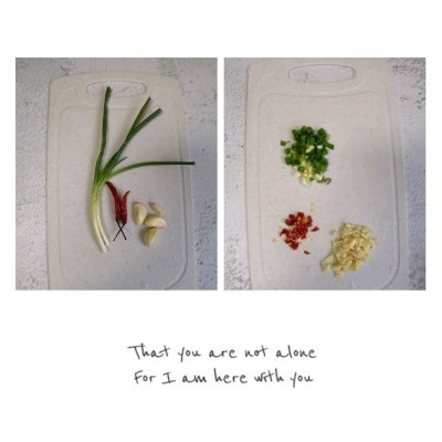 1、准备好葱蒜辣椒,辣椒切圈,葱蒜切沫;