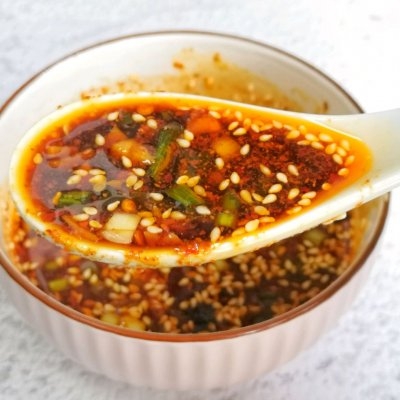 年越来越近了,做为北方人,过年都会吃饺子的,一款美味的饺子蘸料也是不可少的。我家每年都会提前过节哈,饺子连吃好几天都不腻的,因为有秘制蘸料啊❗️我家丁先森说有了这碗蘸料他硬是多吃了一碗饺子! 具体做法,欢迎围观‼️ 1⃣准备好所需食材,小葱切成沫,小米椒切成圈,大蒜去皮切蒜末; 2⃣把葱蒜辣椒放入碗中,加入两勺辣椒面,两勺白芝麻; 3⃣油里放几颗花椒,2个八角,炸一下,热油泼到葱蒜辣椒圈上; 4⃣依次加入一勺糖,一勺耗油,2勺老抽,4勺生抽,4勺醋搅拌均匀